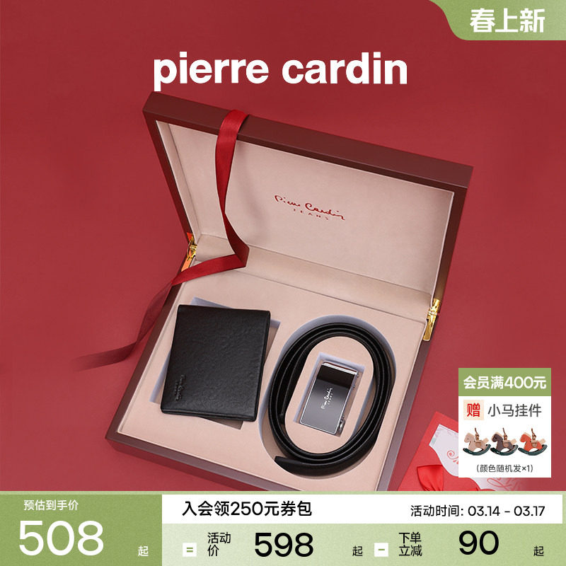 皮尔卡丹男士皮带钱包套装牛皮裤腰带男短款钱夹送爸爸送男友礼物