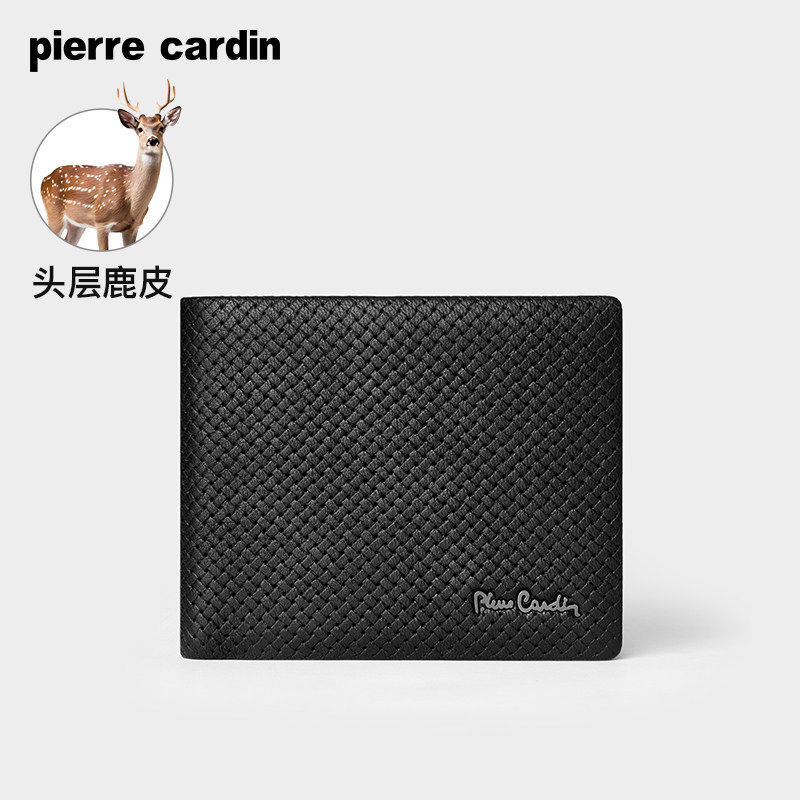 【鹿皮】皮尔卡丹男士编织钱包短款商务真皮钱夹高档奢侈品皮夹子