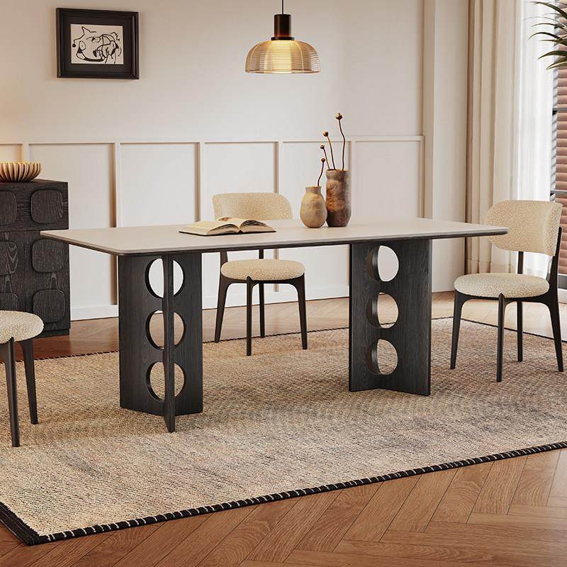 奥古斯特中古洞石岩板餐桌小户型全托饭桌6人长方形岩板实木餐桌