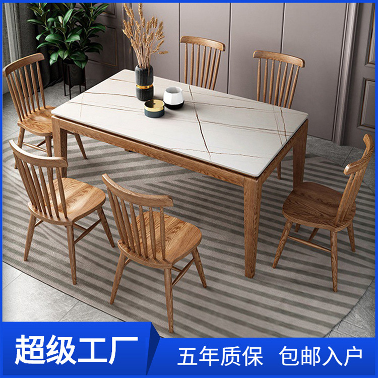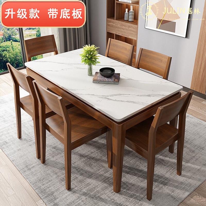岩板餐桌椅组合长方形实木餐桌4人6人饭桌2023款歺桌胡桃木色桌子