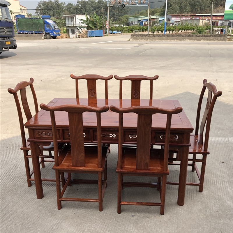 中式餐桌长方形4人6人中式小户型吃饭桌椅组合原木桌子家用方桌