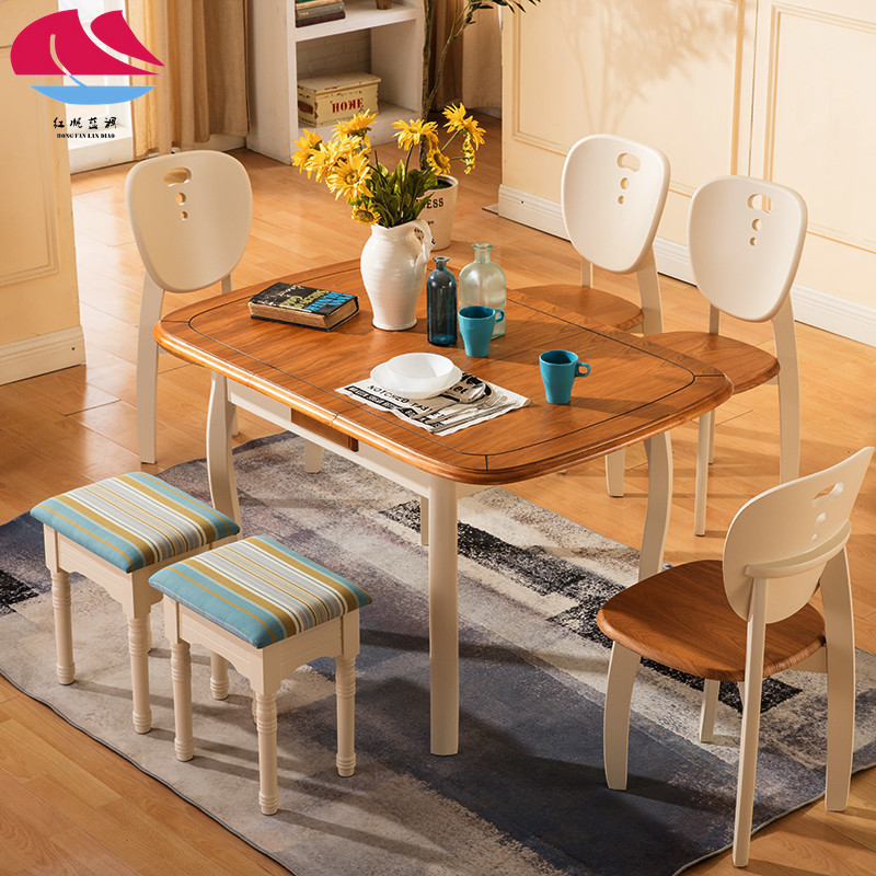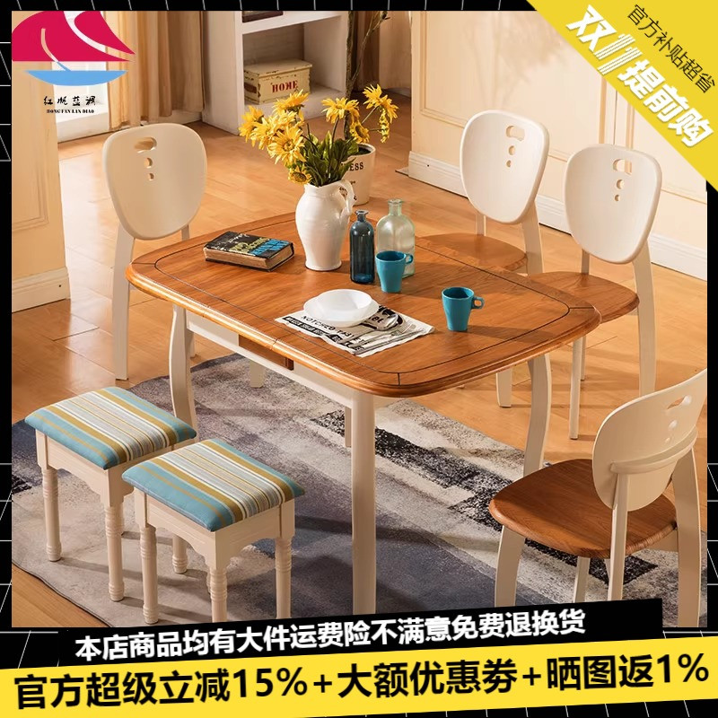 地中海餐桌长方形可伸缩家用6人桌子折叠餐桌小户型4人省空间饭桌
