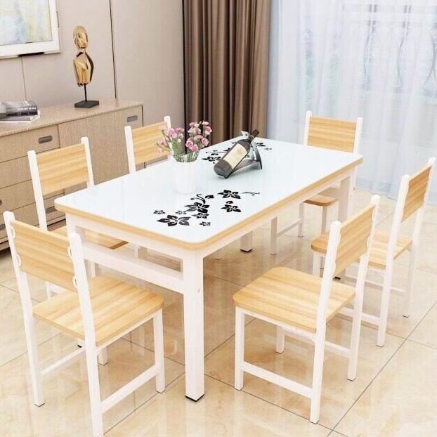 家用吃饭桌子小户型钢化玻璃餐桌椅组合4人6长方形简约现代快餐桌