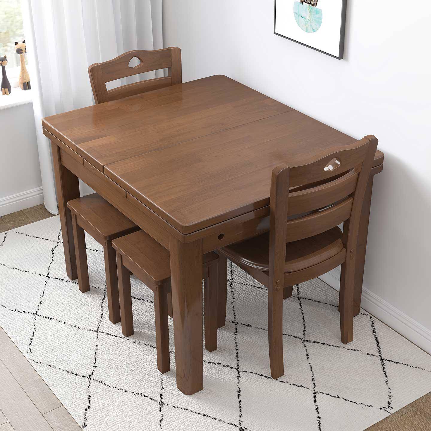 全实木折叠餐桌小户型家用长方形4/6人吃饭桌简约自动伸缩餐桌椅