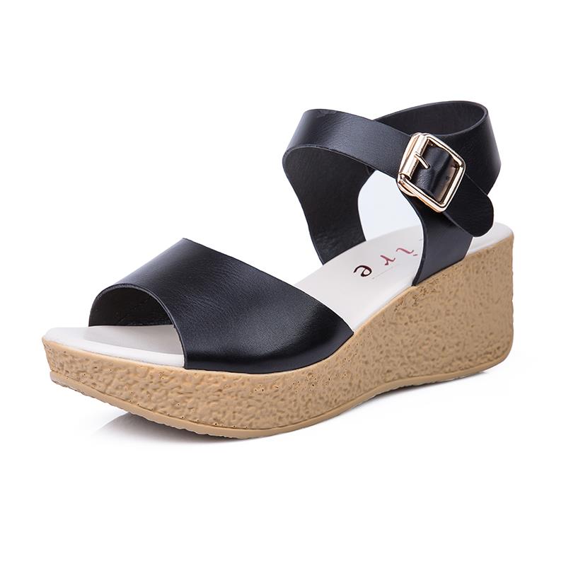 高档夏季新款松糕小厚底生女凉鞋33码34学真4皮高跟鱼嘴妈妈鞋41