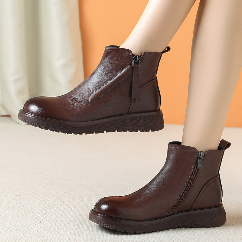 大码妈妈鞋41一43真皮秋冬2025新款软底平底短靴子女士加绒棉皮鞋