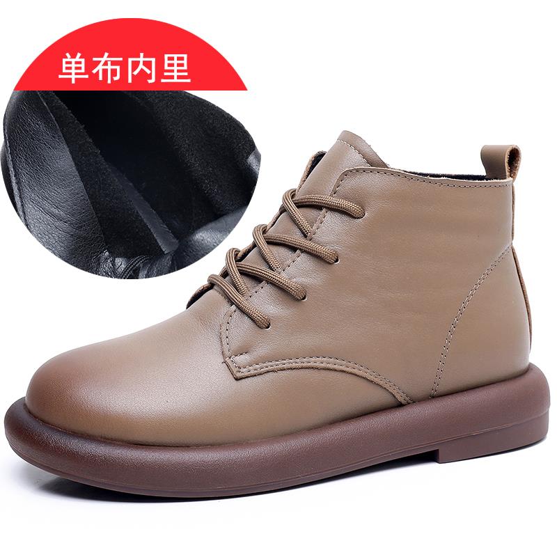 高档软底舒适厚马丁靴中老年平底妈妈鞋41-4大码中3老年底真皮短