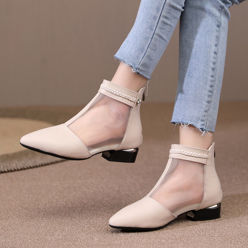 夏季网纱短筒女靴透气舒适镂空凉靴低跟百搭软底妈妈鞋41通勤女鞋