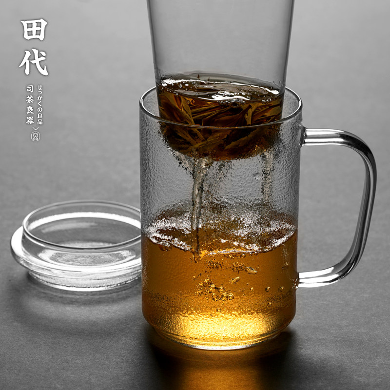 可加热锤纹带把茶杯玻璃过滤三件套泡茶杯子茶水分离办公室喝茶杯