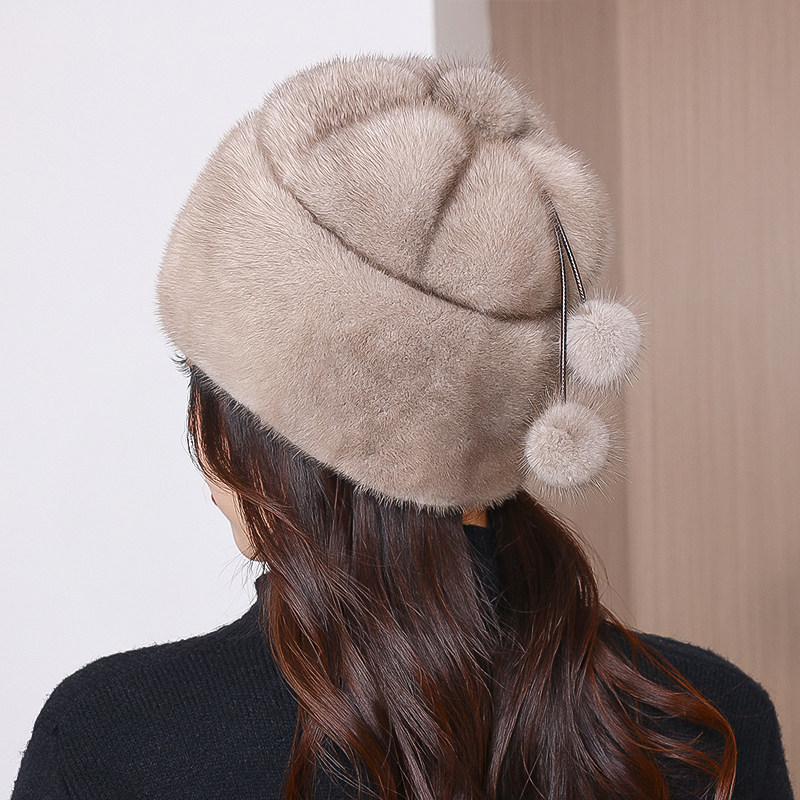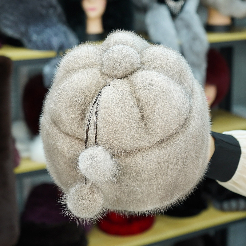 新款仿貂皮帽子女士冬天皮草贝雷帽仿皮草水貂护耳貂毛妈妈蓓蕾帽