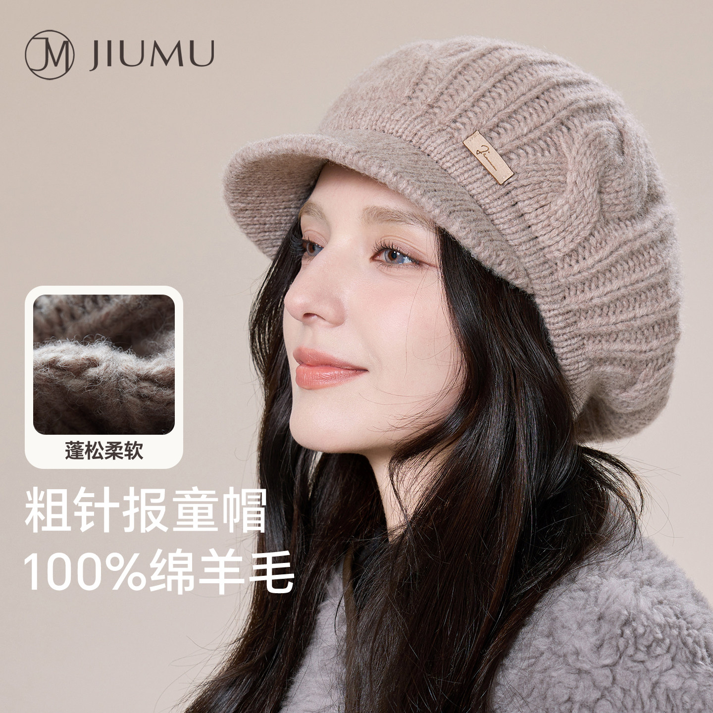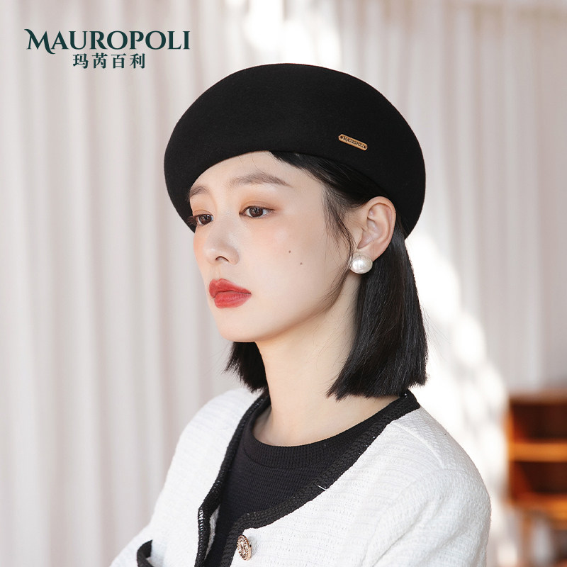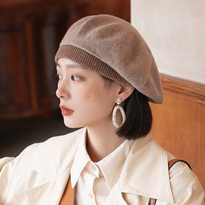 玖慕纯羊毛贝雷帽女士秋冬保暖针织复古毛线画家报童蓓蕾帽子冬天