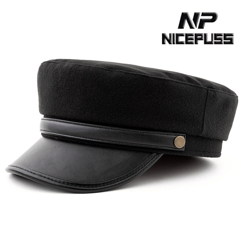 韩国秋冬天皮帽子女休闲百搭黑色皮带扣八角帽韩版鸭舌贝雷蓓蕾帽