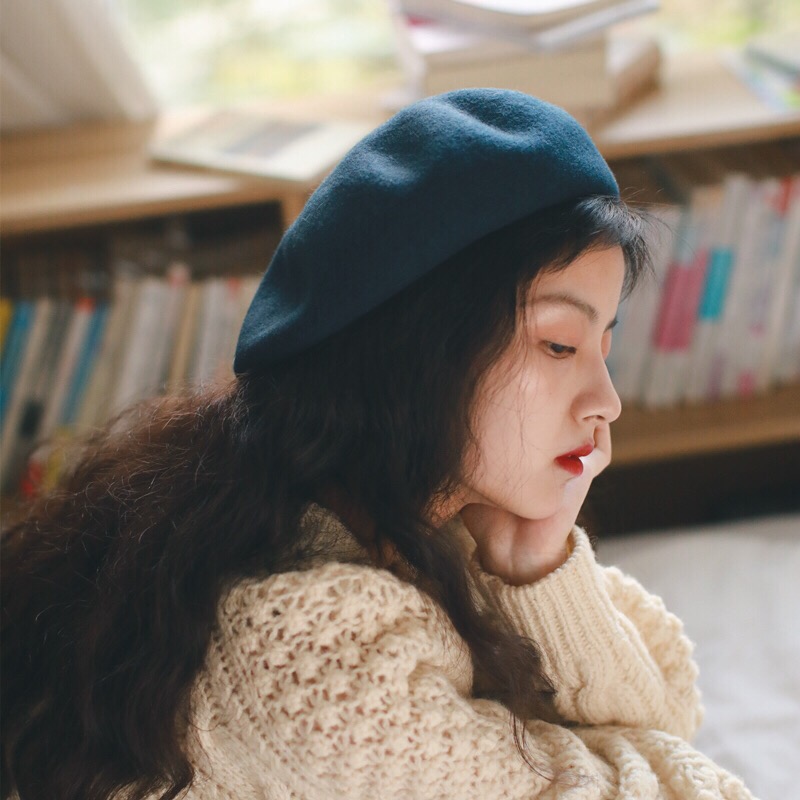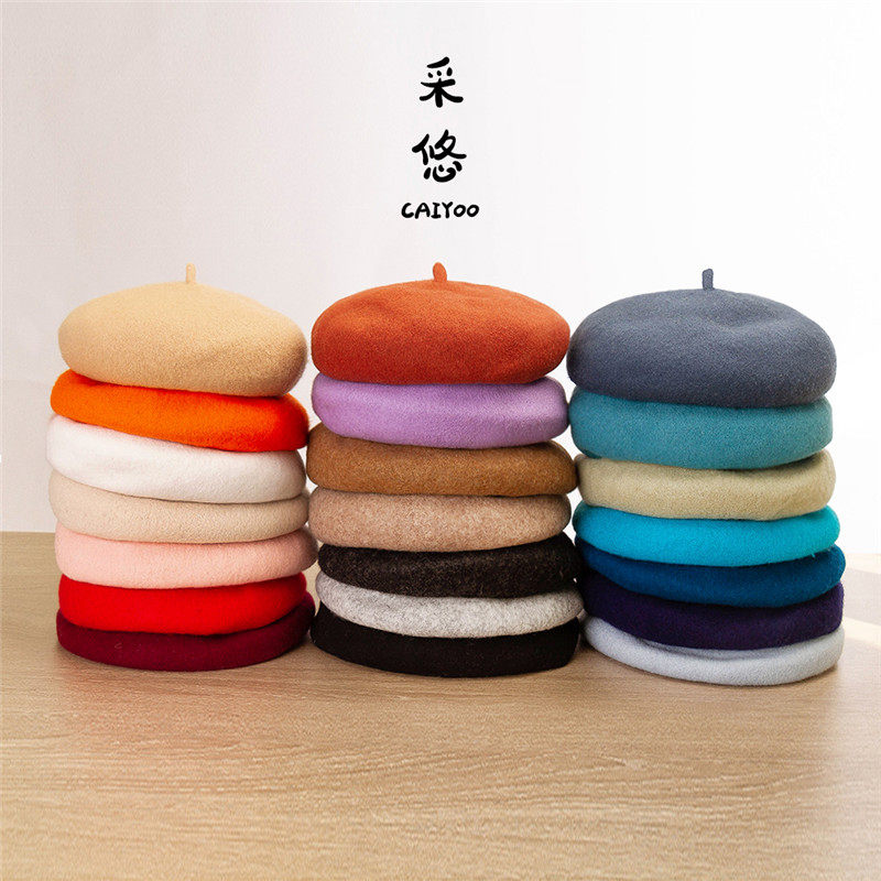 韩国基础百搭款羊毛呢贝雷帽子女秋冬天日系复古文艺蓓蕾画家帽潮