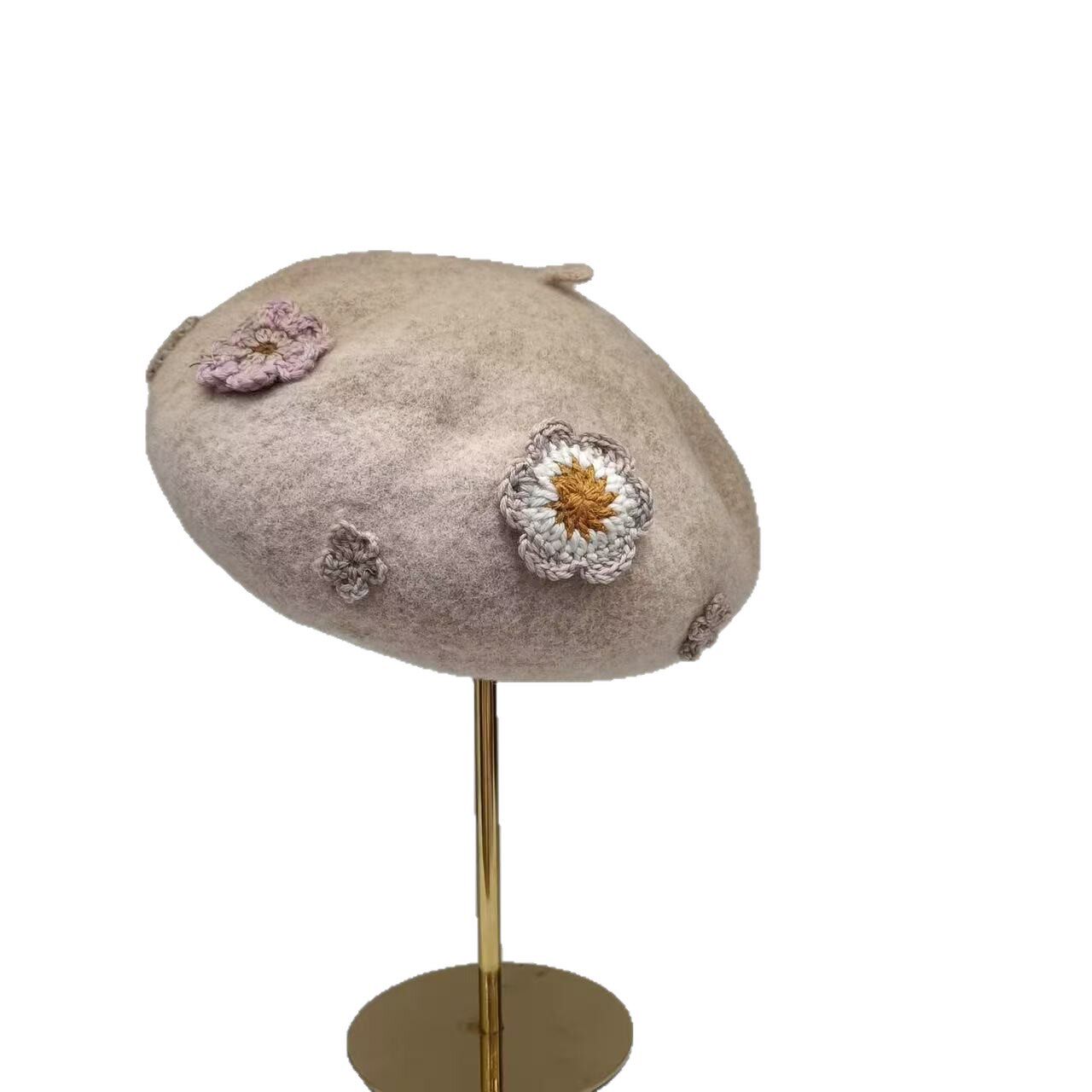 帽子女秋冬天亲子毛呢花朵贝雷帽小清新韩版潮百搭时尚画家帽蓓蕾