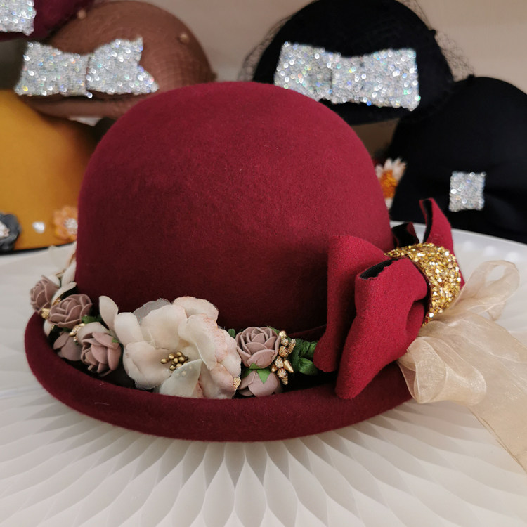 小檐卷边修饰脸型帽子女冬天羊毛小礼帽 女士蓓蕾帽优雅百搭毡帽
