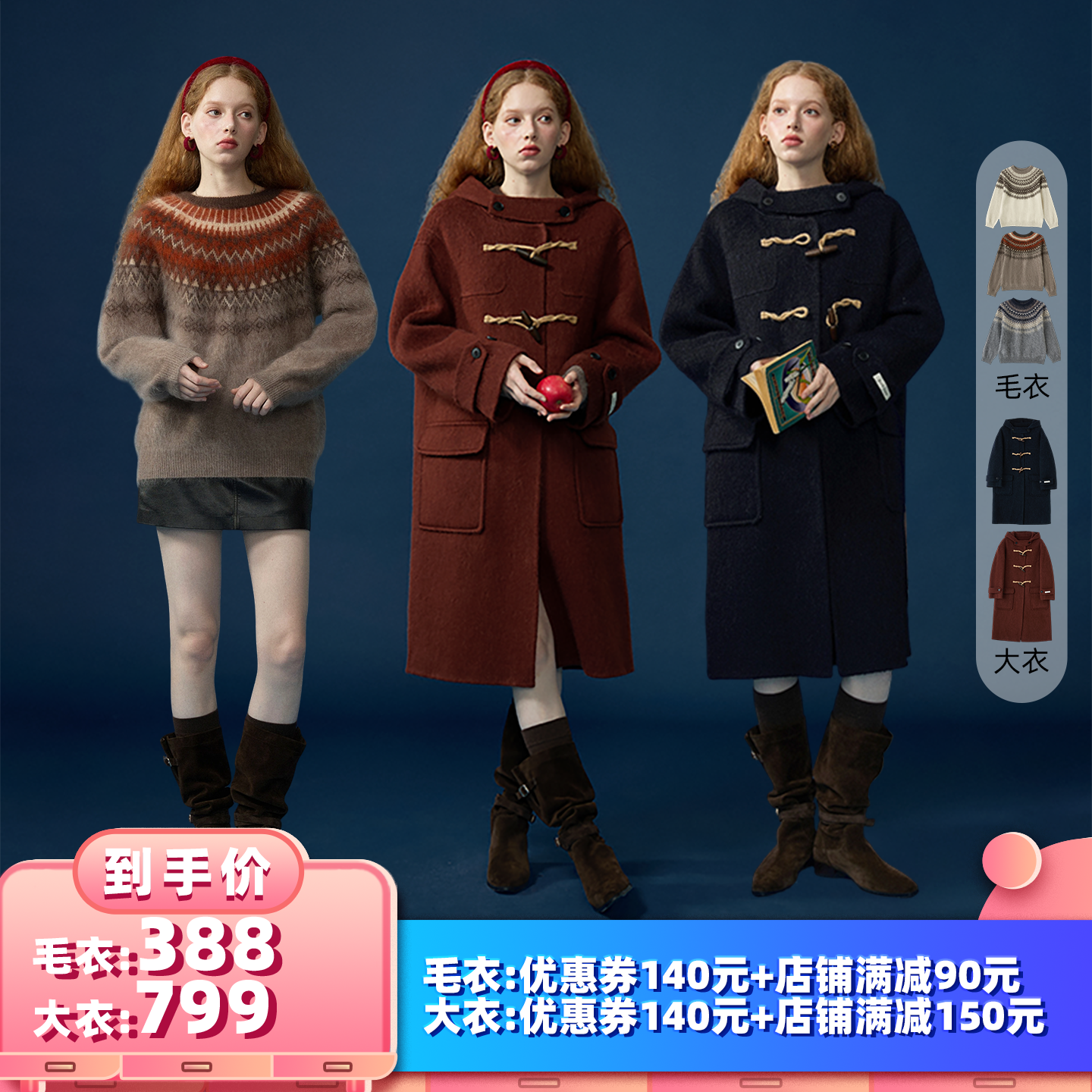 【所有女生的衣橱直播间】猫酱紫复古仿牛角扣大衣女/费尔岛毛衣