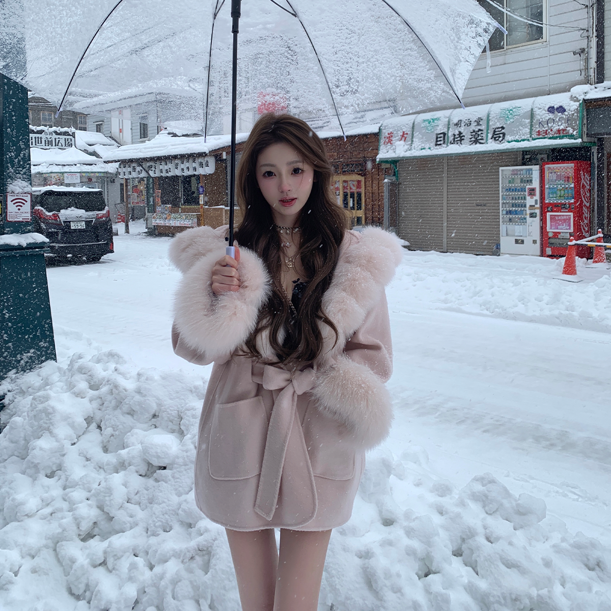 你的懒懒llan【安妮】少女贵气两色双面尼大狐狸毛毛领全羊毛大衣