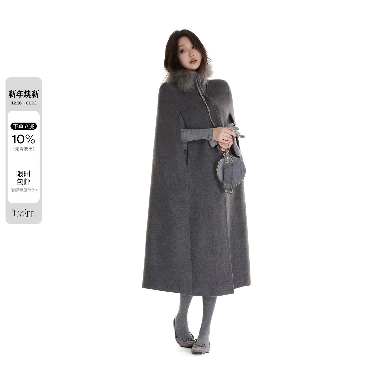 itsdinn“忧郁的女作家”精致立裁50羊毛毛呢大衣无袖斗篷大衣
