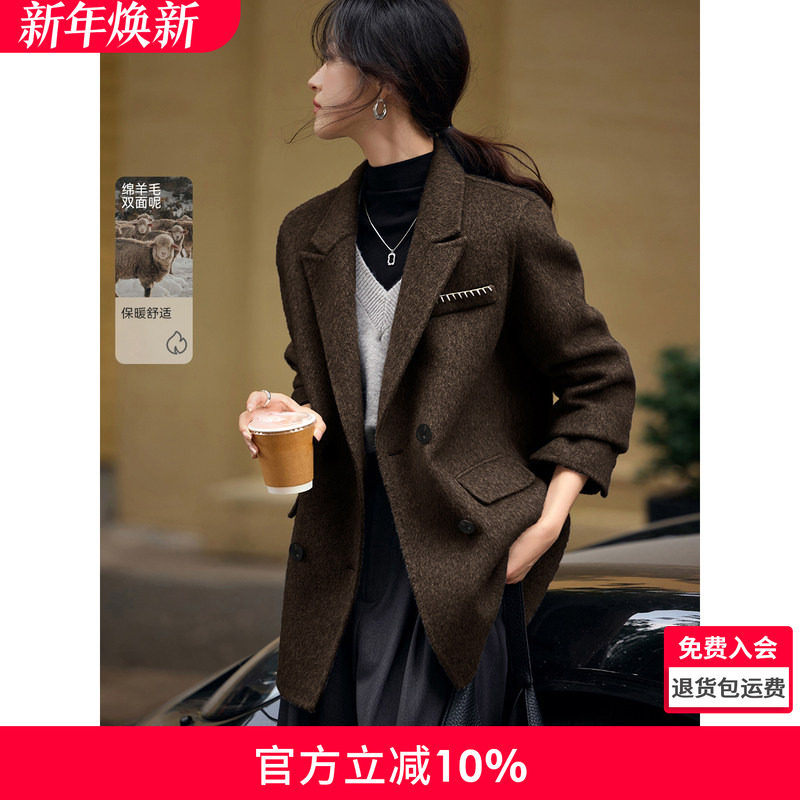 沫晗依美今年流行的女装西装外套上衣女2025冬新款爆款双面呢大衣