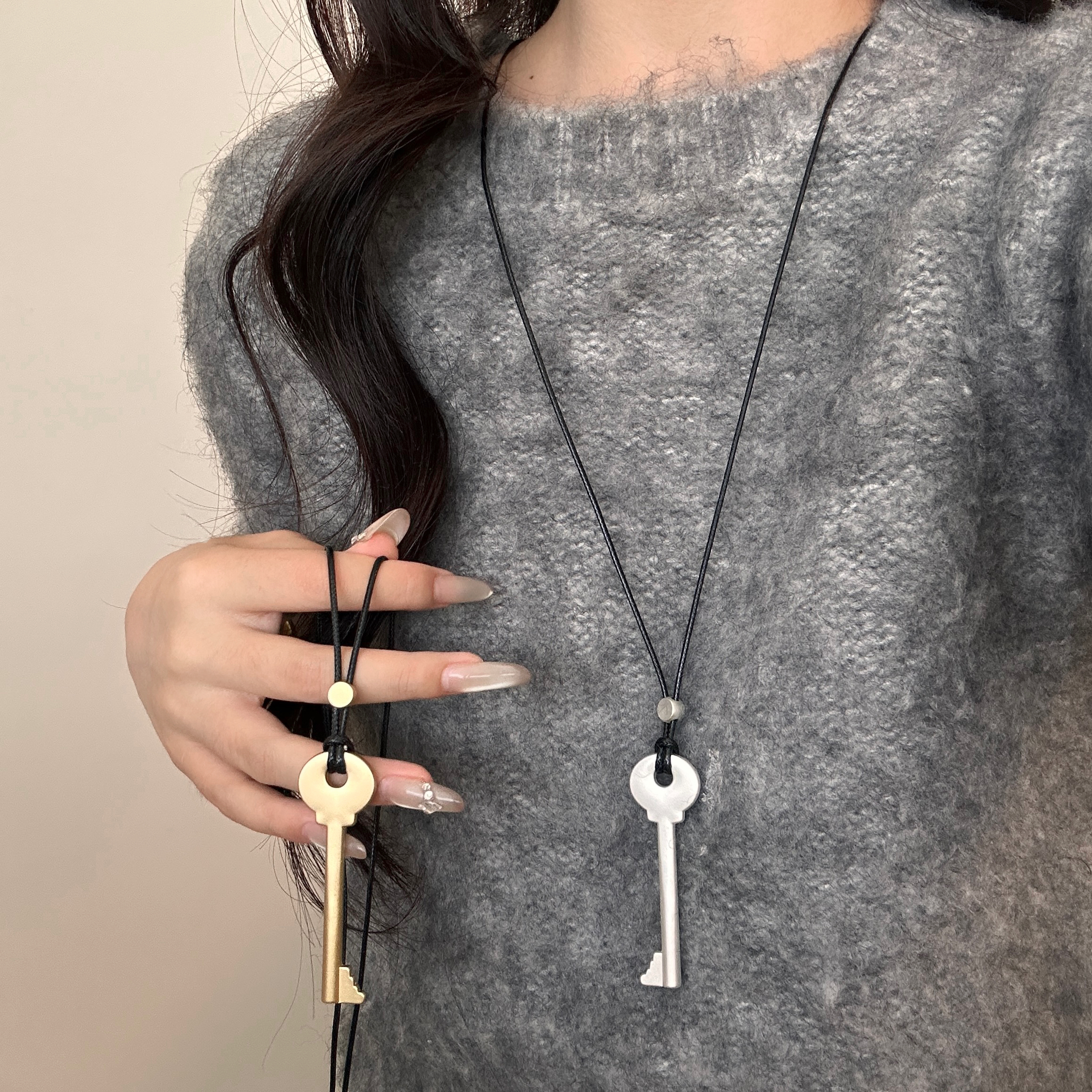 简约哑光钥匙吊坠项链女轻奢小众设计秋冬长款毛衣链百搭挂脖配饰