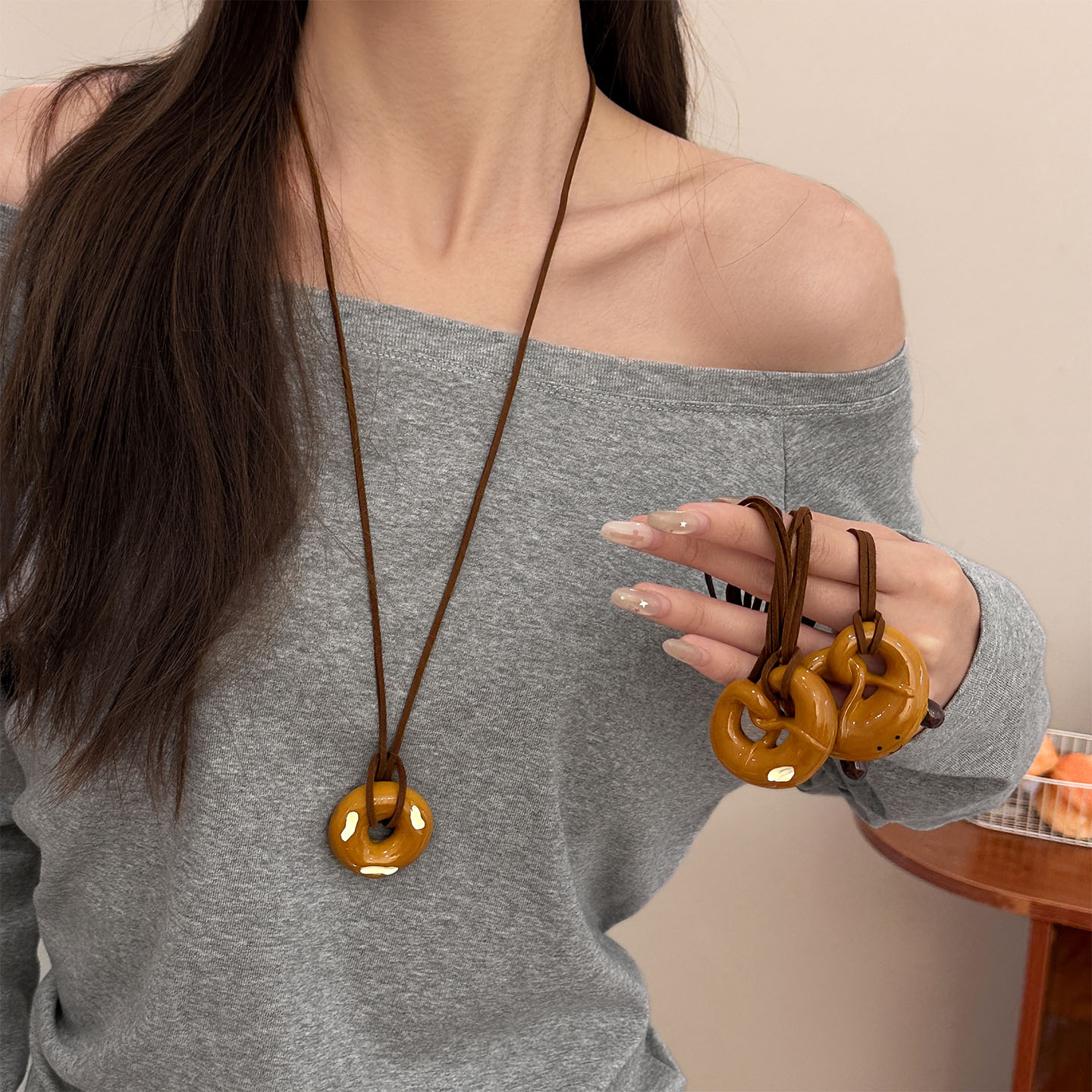 可颂碱水结牛角包甜甜圈面包项链女百搭包包钥匙扣挂件颈链毛衣链