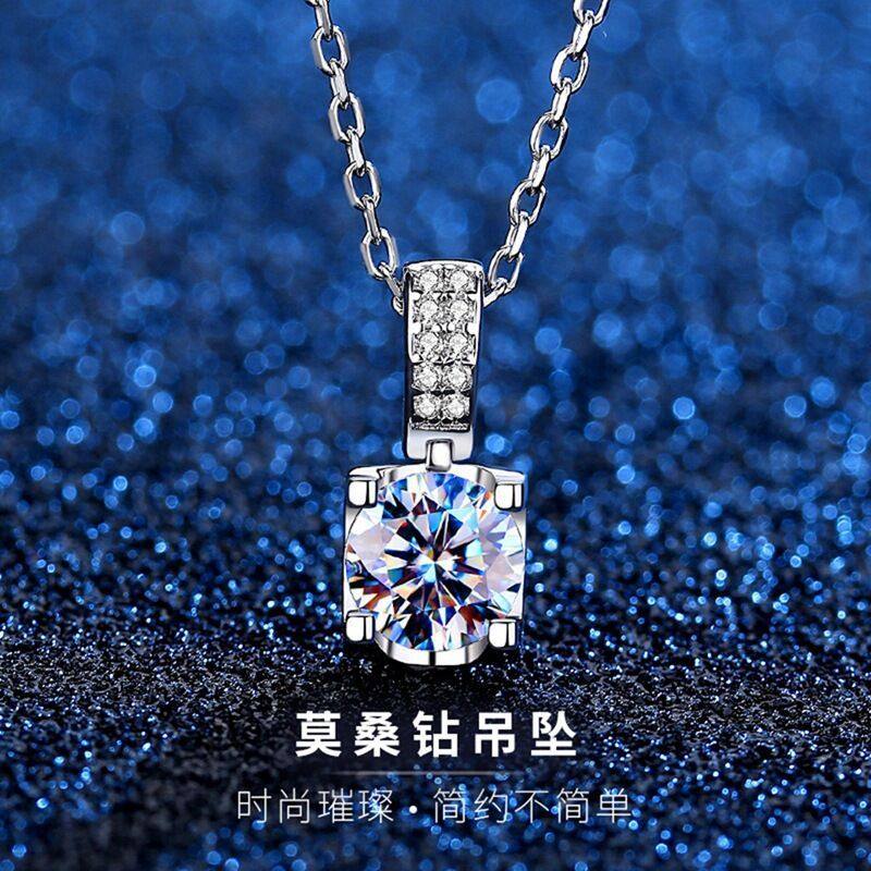 莫桑石吊坠锁骨链925纯银镀18K白金钻石项链女款情侣日韩纯银银饰