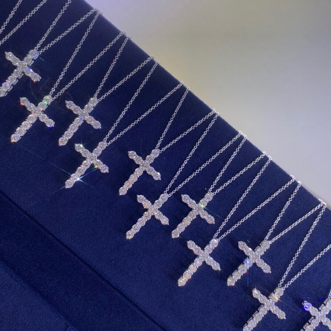十字架项链莫桑石吊坠女款纯银镀白金锁骨链可订铂金PT950气质夏