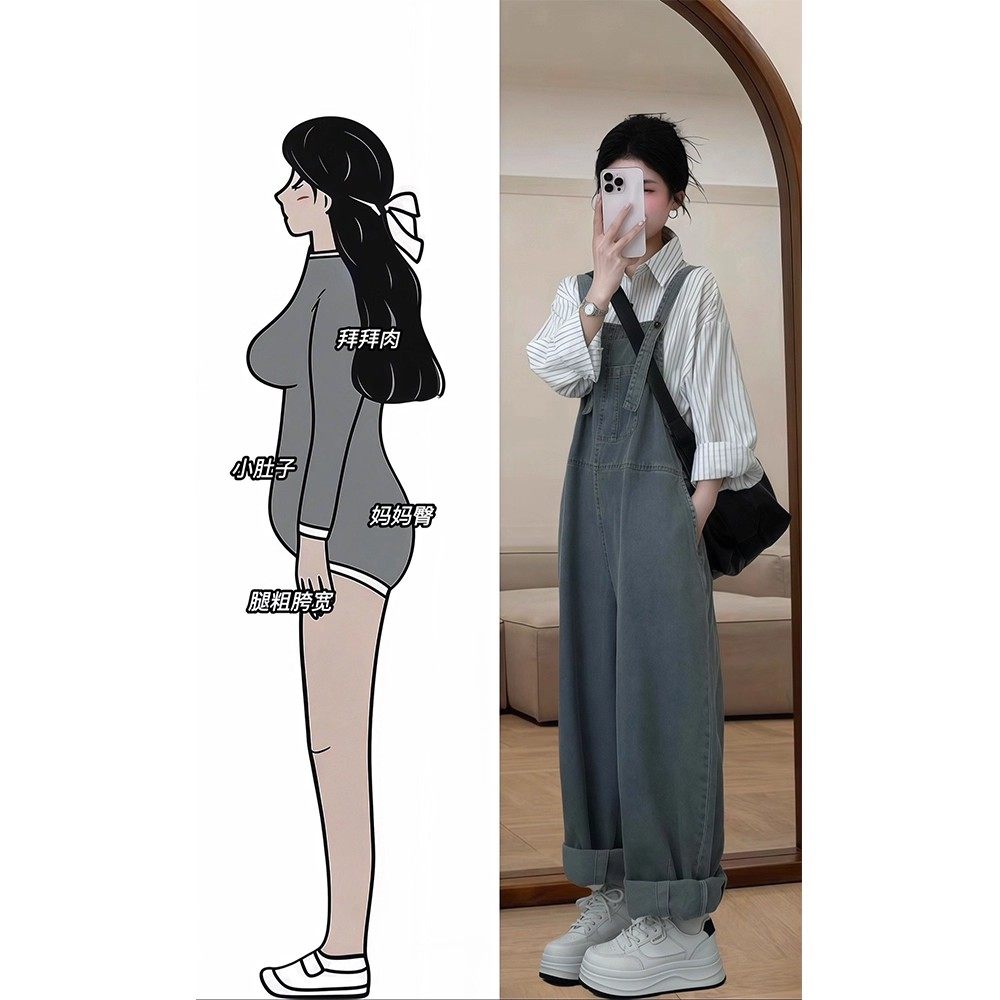 300斤胖mm大码女装工装背带牛仔裤女梨型身材宽松阔腿百搭连体裤