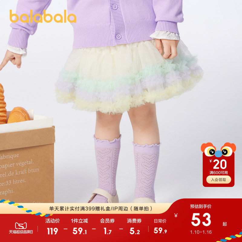 巴拉巴拉童装儿童裙子红色女童短裙新款网纱蓬蓬裙新年半身裙洋气