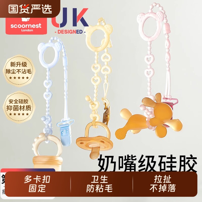 链玩具磨牙奶嘴夹扣棒硅胶防牙胶防掉奶嘴链丢奶嘴安抚婴儿绳宝宝