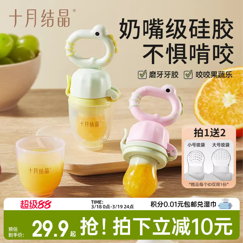 十月结晶婴儿牙胶吃果蔬玩乐吃水果神器宝宝奶嘴辅食咬咬袋磨牙棒