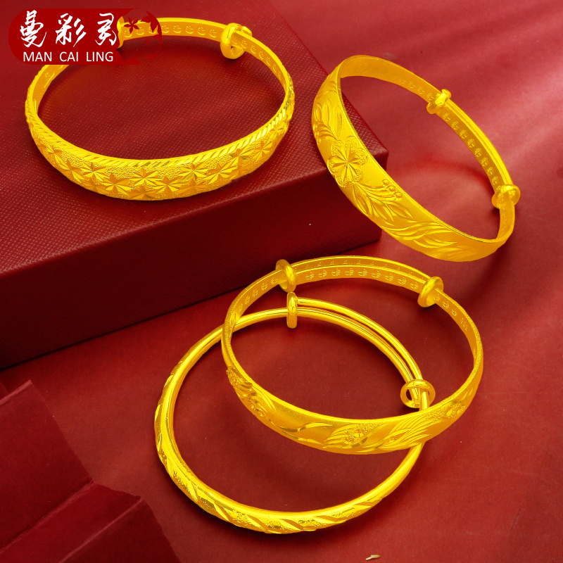 新款金店同款橱窗摆设凤凰花朵手镯仿真黄金手镯新娘结婚三金饰品