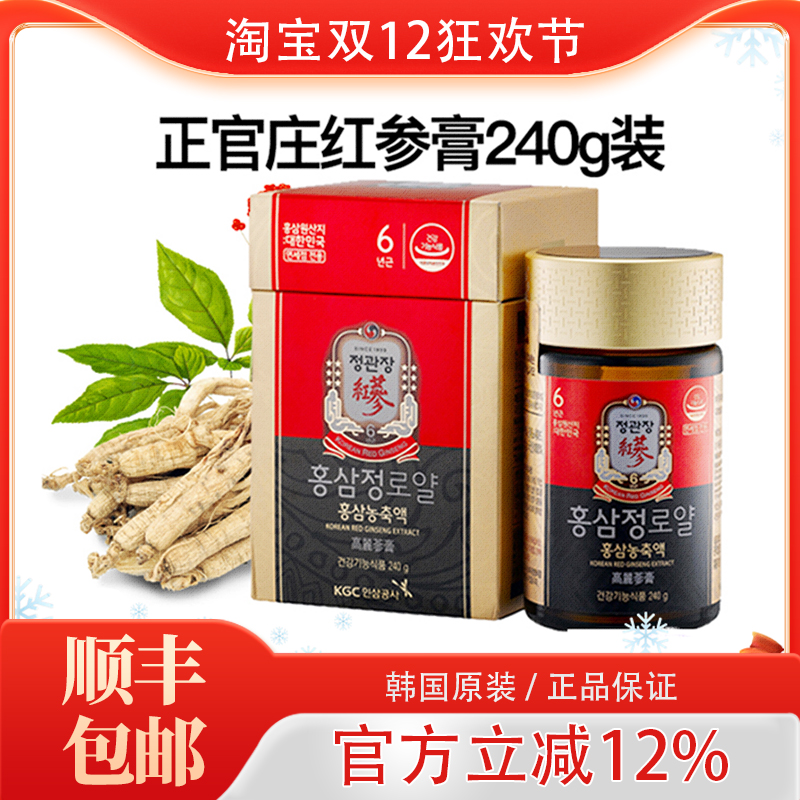 韩国正官庄6年根高丽参精红参液红参膏精华浓缩液高丽参人参240g