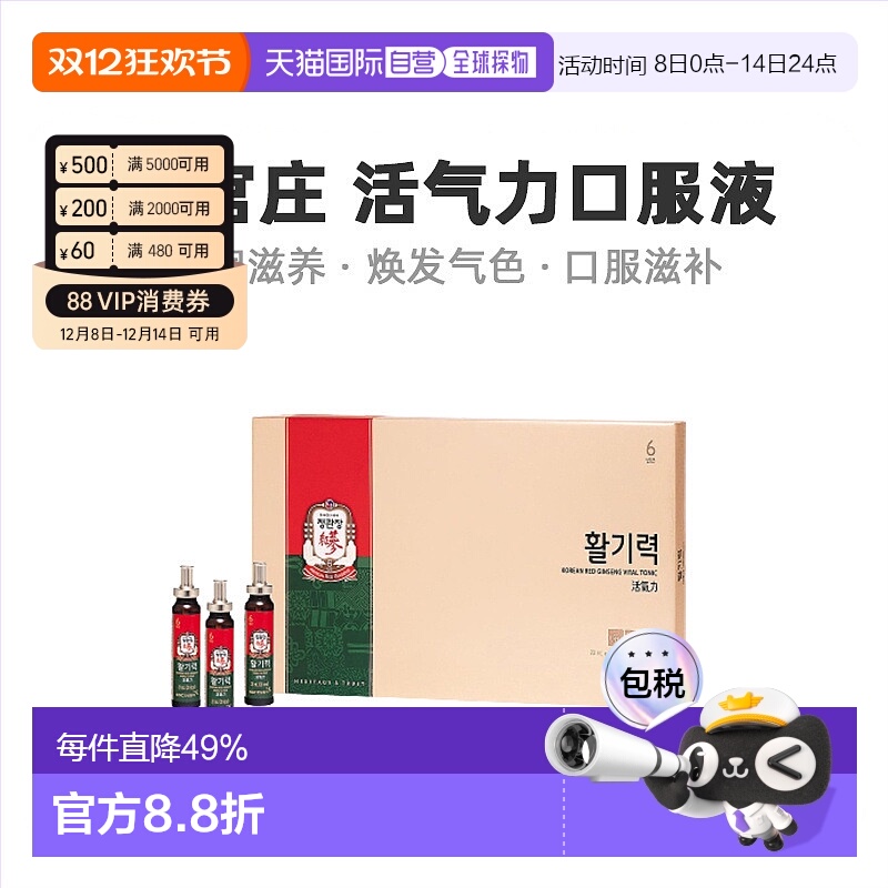 【香菇双12】正官庄6年根高丽参红参元力滋补大礼盒送礼50ml*30包