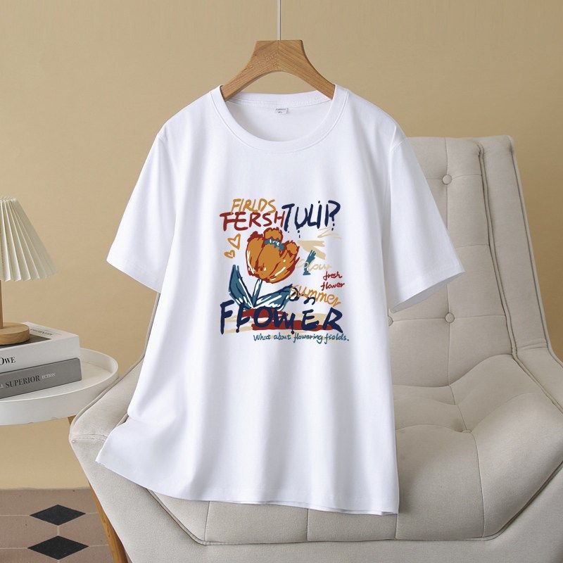 印花T恤女夏季短袖中年妈妈女装宽松大码休闲百搭显瘦遮肉上衣服
