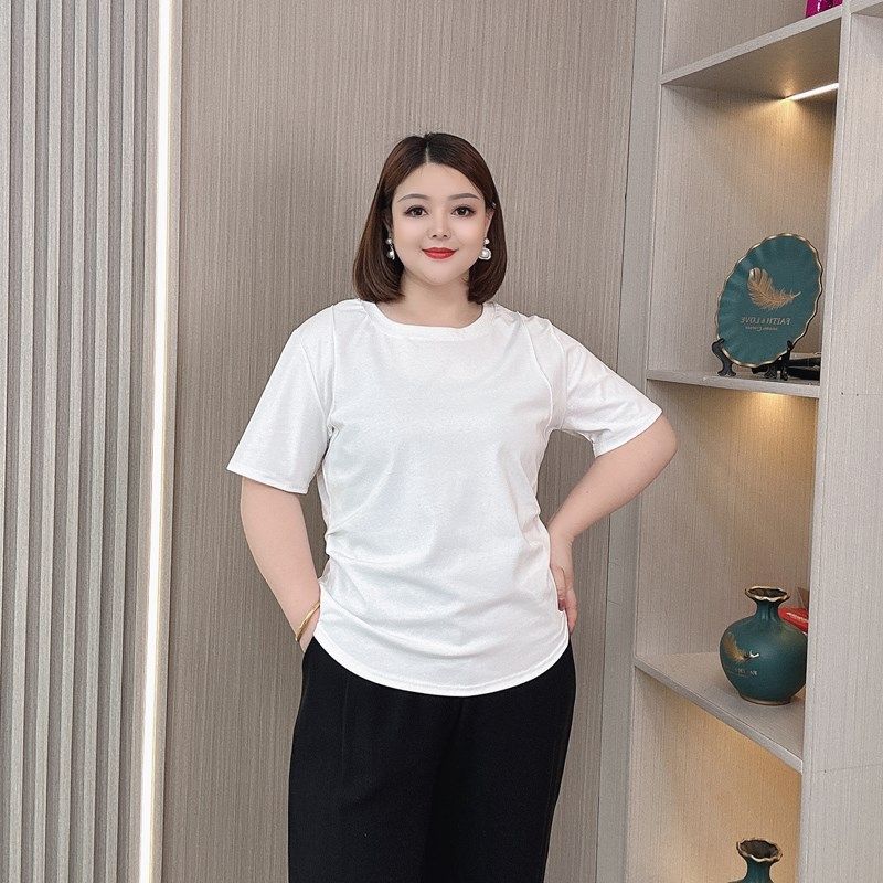 300斤显瘦夏季短袖T恤胖莹莹大码女装不规则纯色百搭时尚薄款上衣