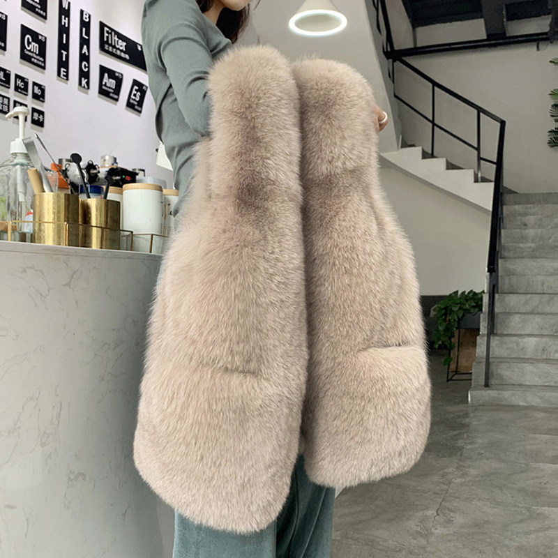 2025秋冬新进口整皮狐狸毛皮草马甲女中长款毛毛外套显瘦B1764