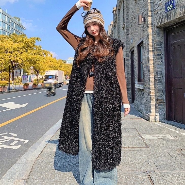 秋冬韩版设计感中长款毛毛马甲女羊羔毛皮草外套无袖宽松时尚坎肩