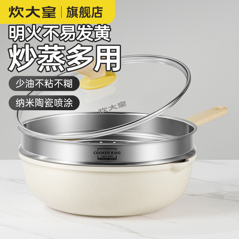 炊大皇不粘锅家用聚能耐磨炒锅炒菜锅平底锅煎锅奶锅高煎锅带蒸屉