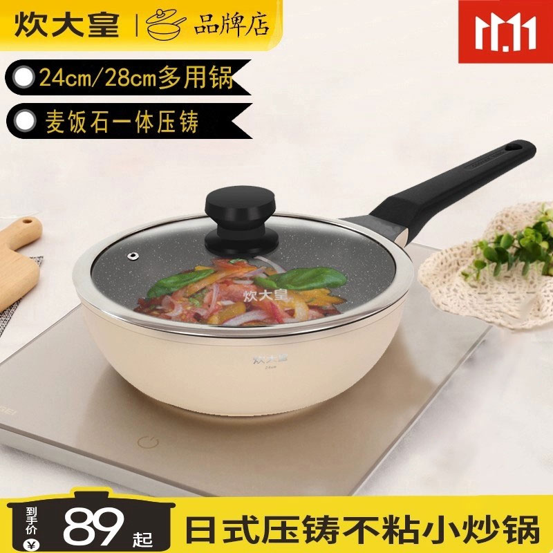 炊大皇不粘锅24cm小炒锅一人用平底多用锅电磁炉通用28不沾炒菜锅