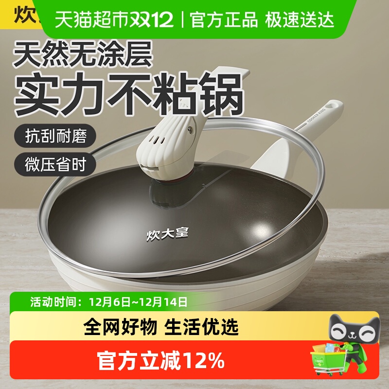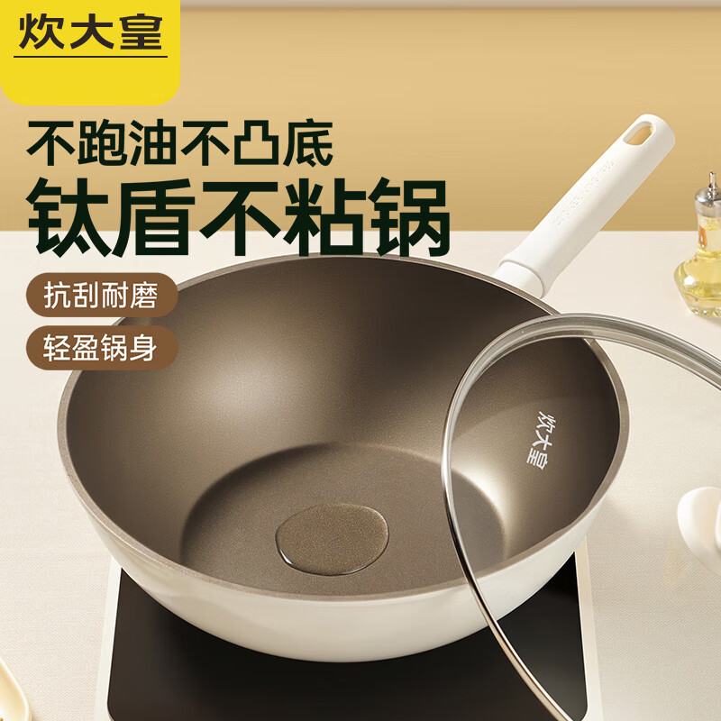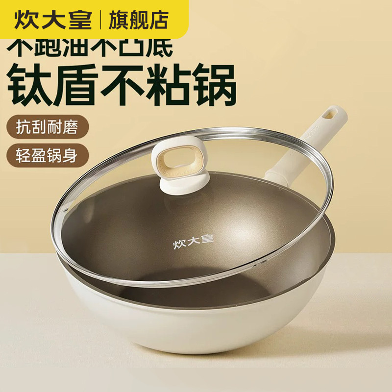 炊大皇不粘锅炒菜锅微压无涂层钛锅家用炒锅电磁炉燃气灶专用无烟
