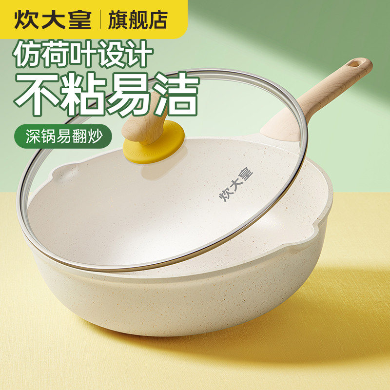 炊大皇不粘锅炒锅家用炒菜锅麦饭石电磁炉官方旗舰店平底不挑炉灶