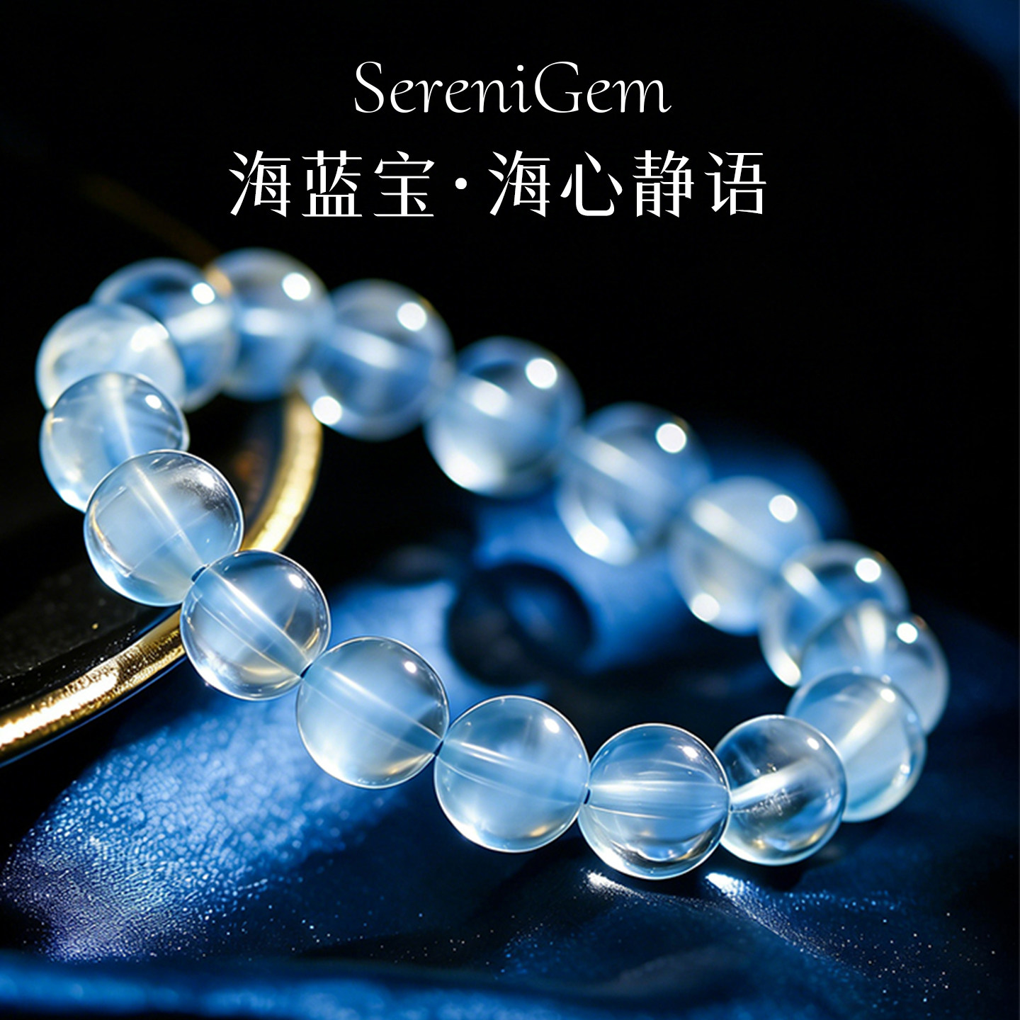 SereniGem谧彩境 海蓝宝冰透巴西女礼物饰品蓝色水晶大珠手串11mm