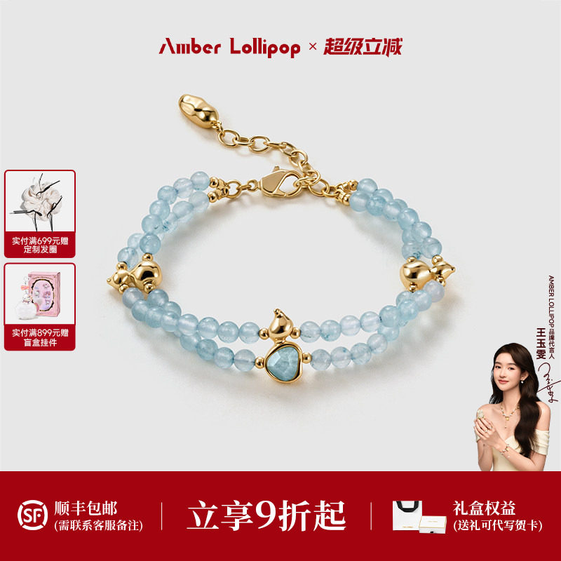 Amber Lollipop海蓝宝手链女双层叠戴宝石手串爆款配饰 葫系列
