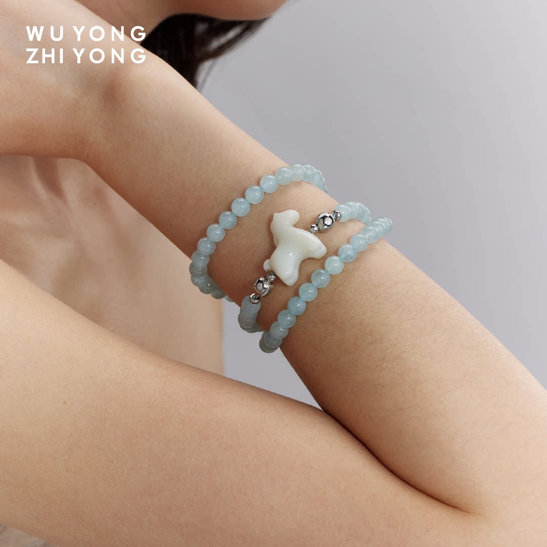 无用之用「马年限定」白玉小马海蓝宝手链红玛瑙本命年项链礼物女