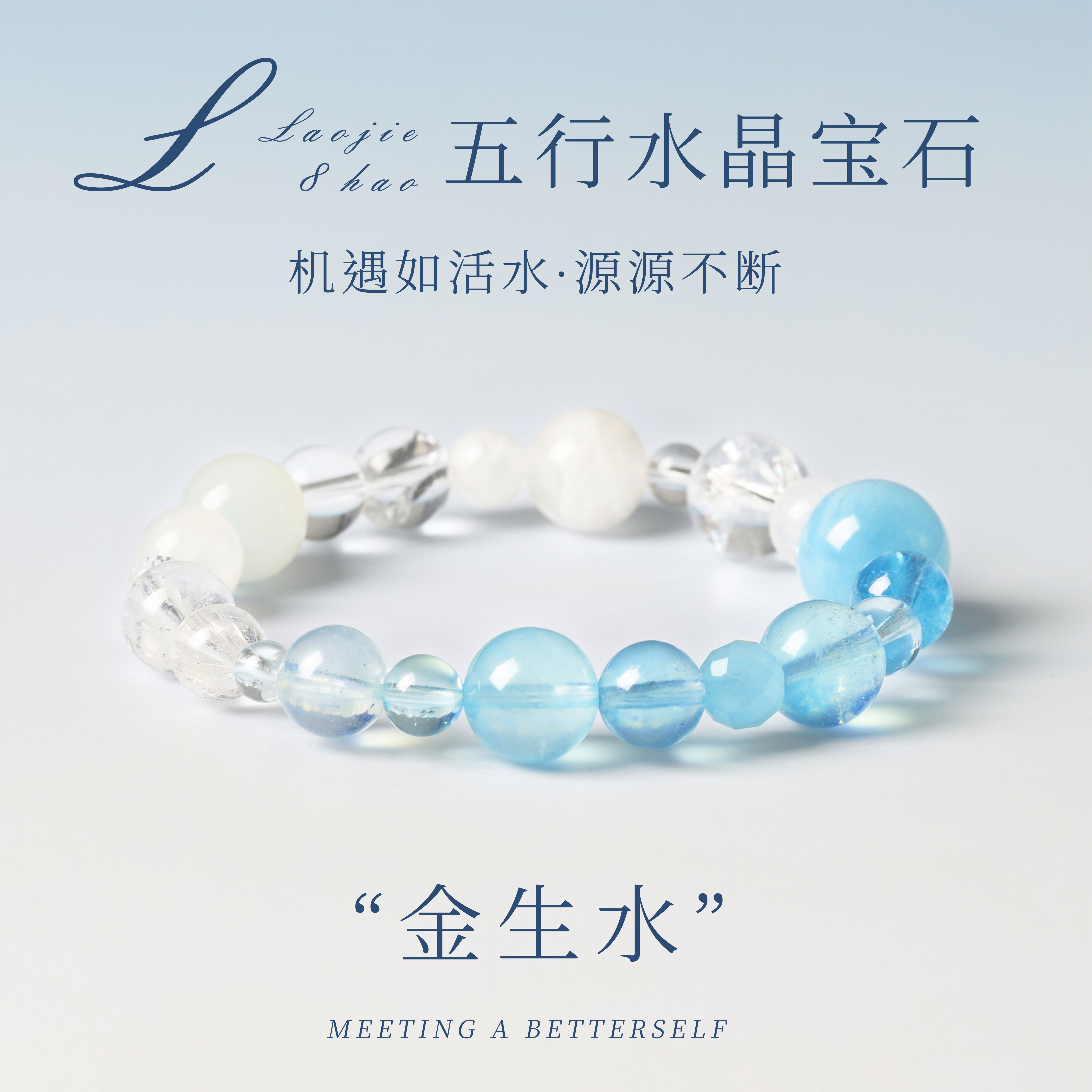 QIANTAO「半夏蓝」原创天然高净体白水晶海蓝宝好运手串情侣礼物