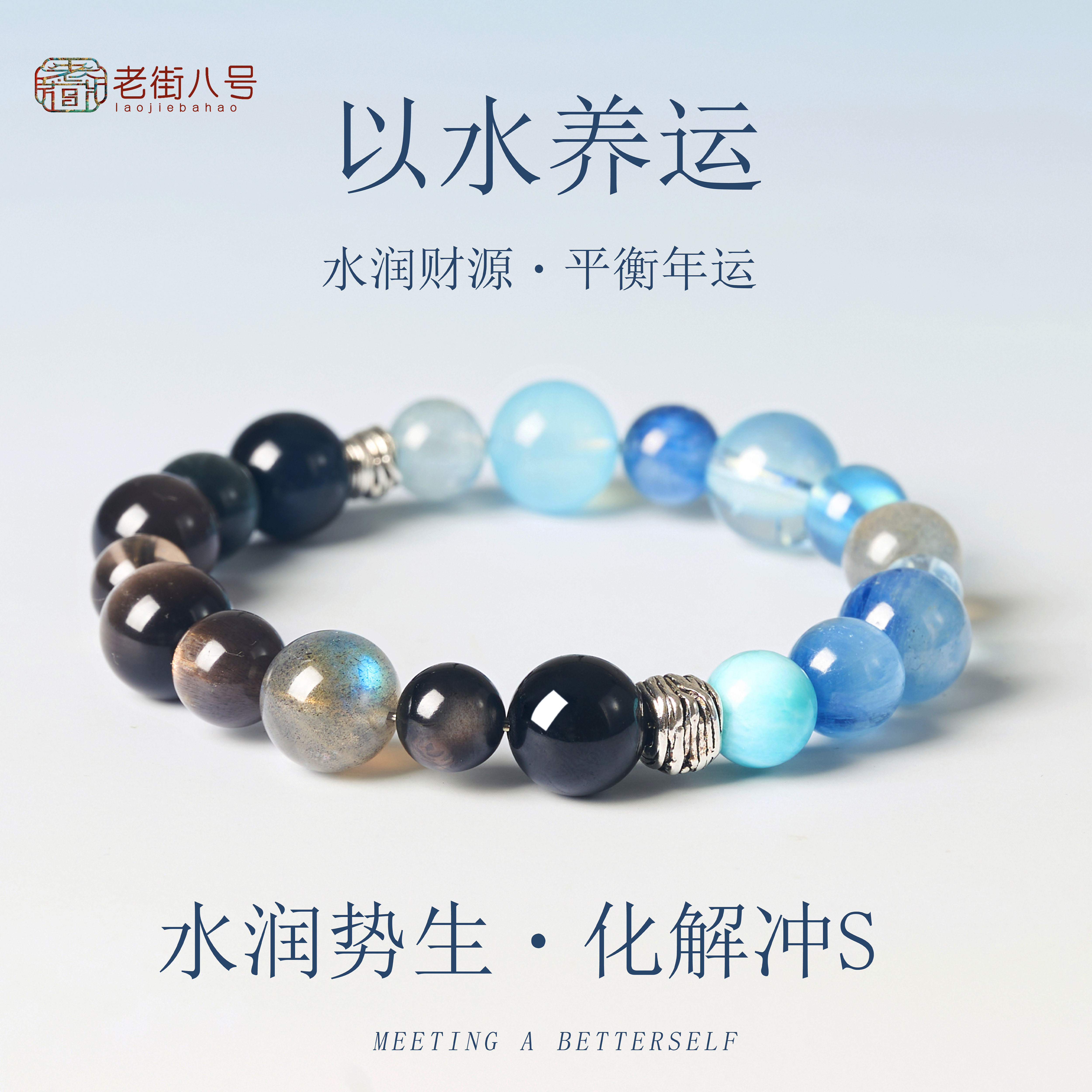 海蓝宝手串黑曜石海蓝宝手串女款补水手链情绪稳定本命年转运平安