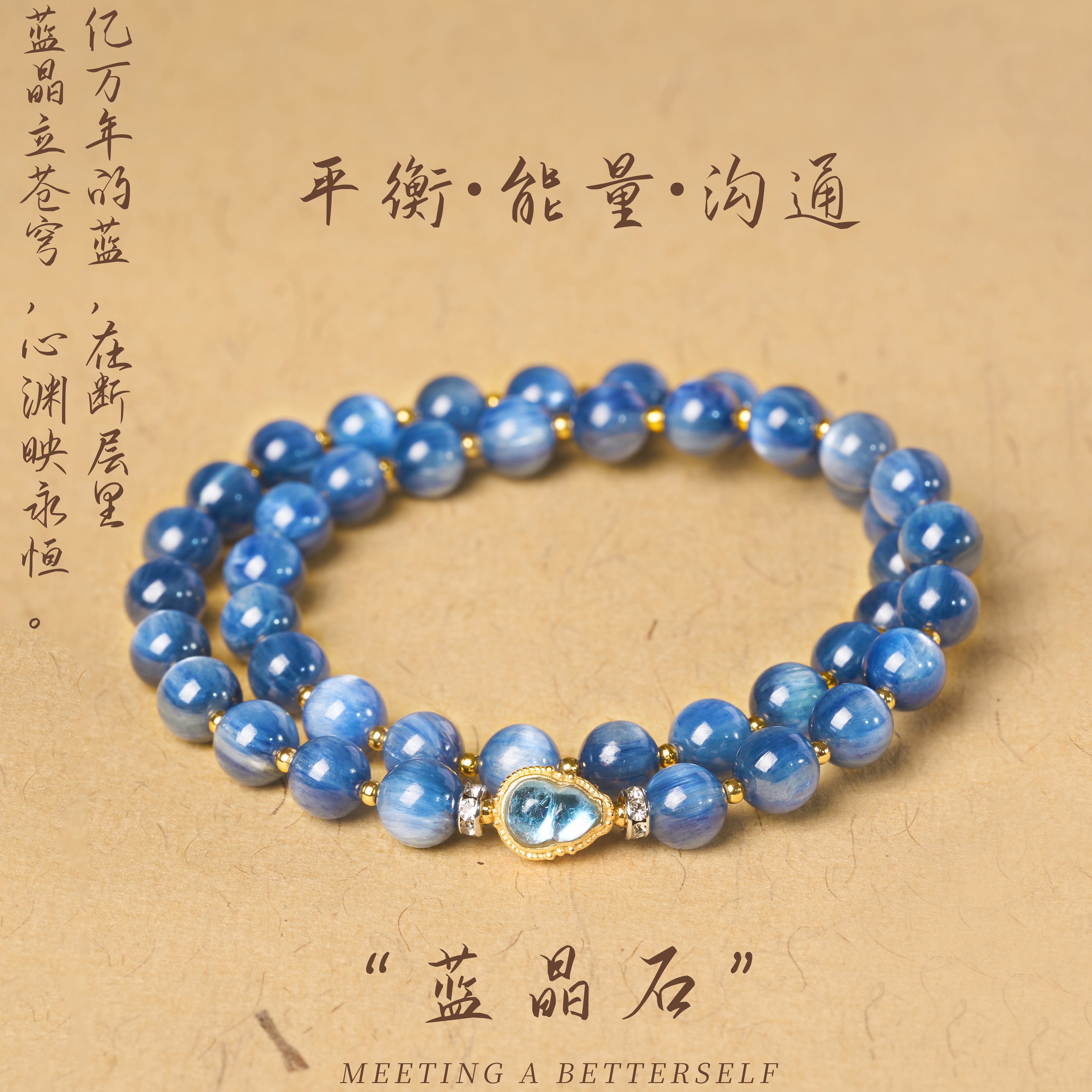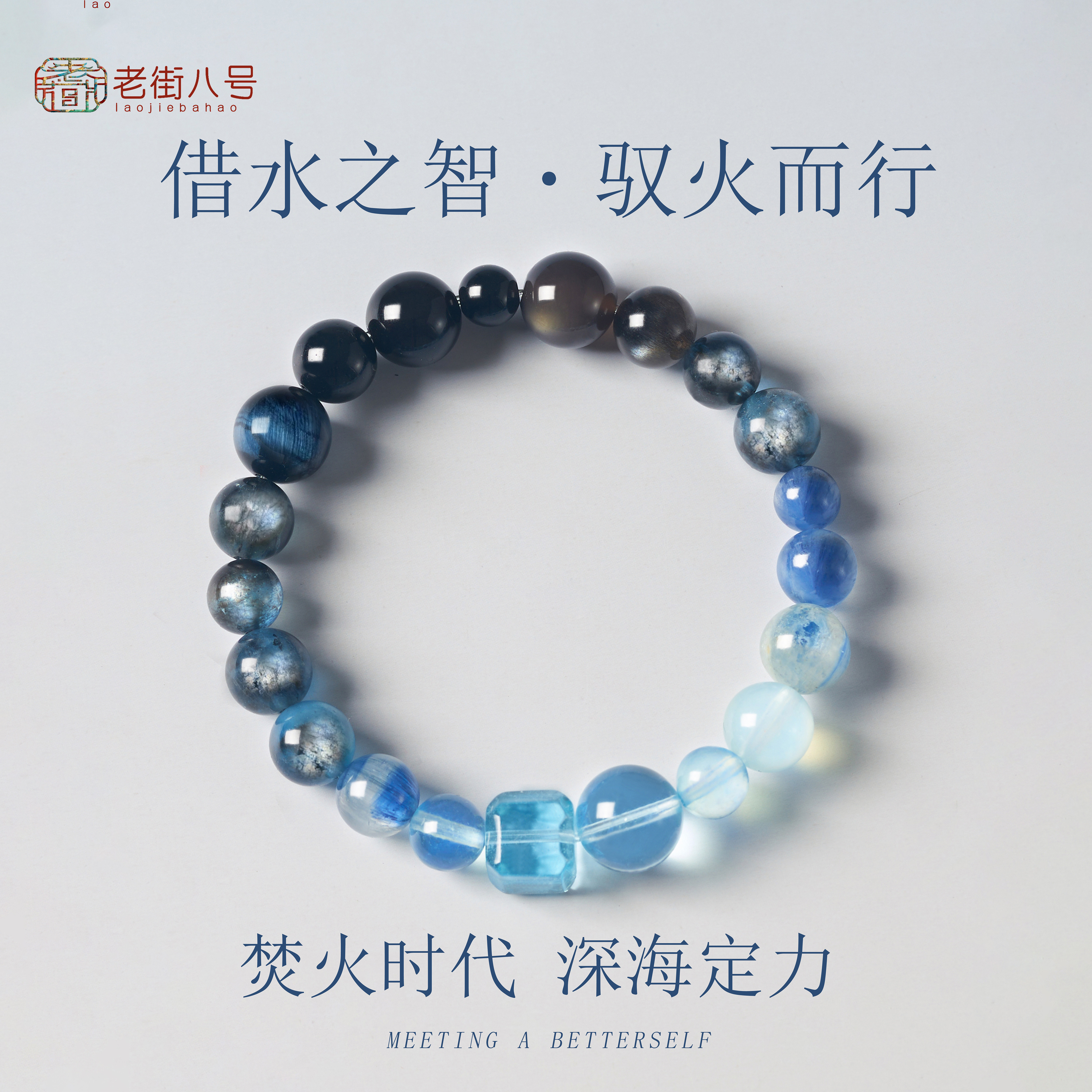 蓝晶石手串天然海蓝宝石手链蓝色水晶猫眼石青金石圆珠收藏级串珠