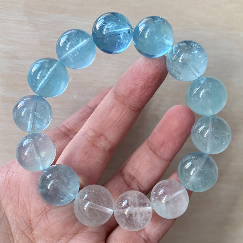 天然冰透渐变海蓝宝手链润蓝色蓝水晶手串清新饰品礼物情侣款配饰
