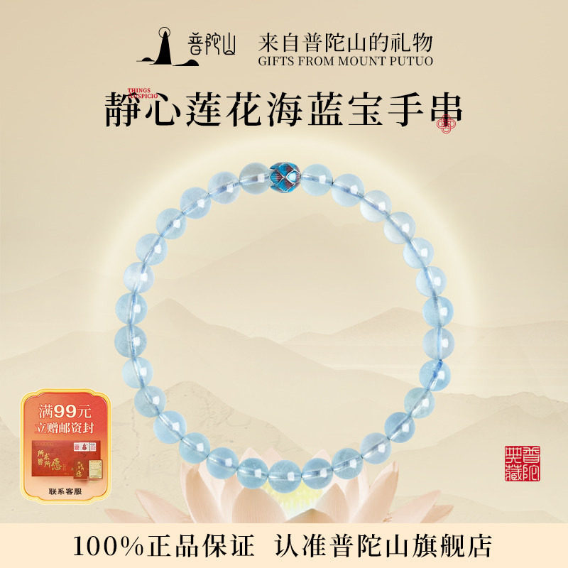 【普陀山正品】天然黑曜石海蓝宝水晶手串本命年转运情侣手链手串